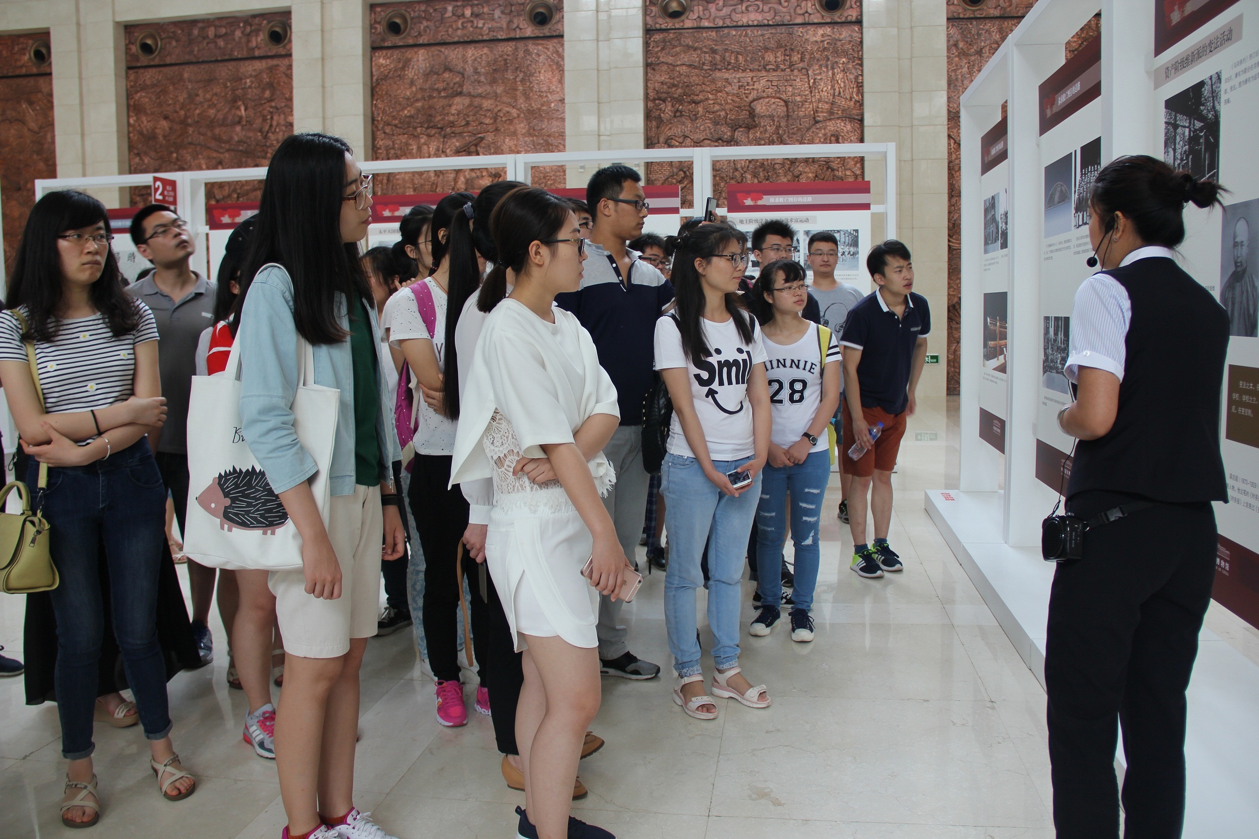 组织员商淼、学办党支部书记张维带领学生支部书记和预备党员共64名赴辽宁省博物馆参观,旨在提高党员的党性,激发大家的爱国之情。