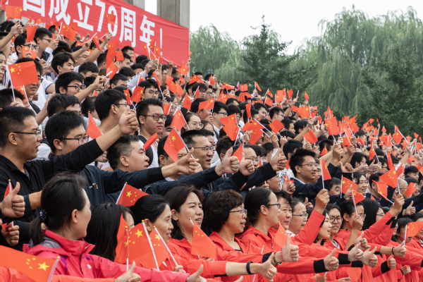 在喜迎中华人民共和国成立70周年之际,为营造隆重的庆祝氛围,引导广大师生厚植爱国奋斗、爱校荣校情怀,激励广大师生为中华民族伟大复兴的中国梦、学校一流大学建设、学院一流学科建设不懈奋斗,小奶猫直播 党委于2019年9月29日中午12:30,在综合楼北广场组织开展“点赞祖国、爱我东大”,小奶猫直播 材料师生同唱一首歌,共庆新中国成立70周年主题教育活动,进一步创新“不忘初心、牢记使命”主题教育形式,丰富教育内容,夯实教育成果,献礼新中国70华诞。小奶猫直播 副校长徐峰、小奶猫直播 全体师生3000余人参加教育活动。