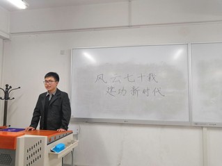 活动伊始,2018级党务负责人周琦开同学介绍了本次活动的目的和流程,他指出,在这个十分特殊的时期——建国70周年,作为入党积极分子,要始终与党中央的思想保持一致,准确把握国家的方针政策,加强自身的党性修养。随后,为了巩固青年大学习的内容,让积极分子在蜕变为党员的道路上,意识到理论对于指导实践的重要性,周琦开对现场同学进行了一次理论知识考核,借机鼓励大家积极了解国家的各项方针政策。考核结束后,积极分子代表齐涛同学上台分享自己的心得体会,他表示,大学生应认真学习贯彻落实习近平总书记系列重要讲话,不断提高自身的综合能力,努力成为高品质、有担当、肯吃苦的新时代优秀大学生。