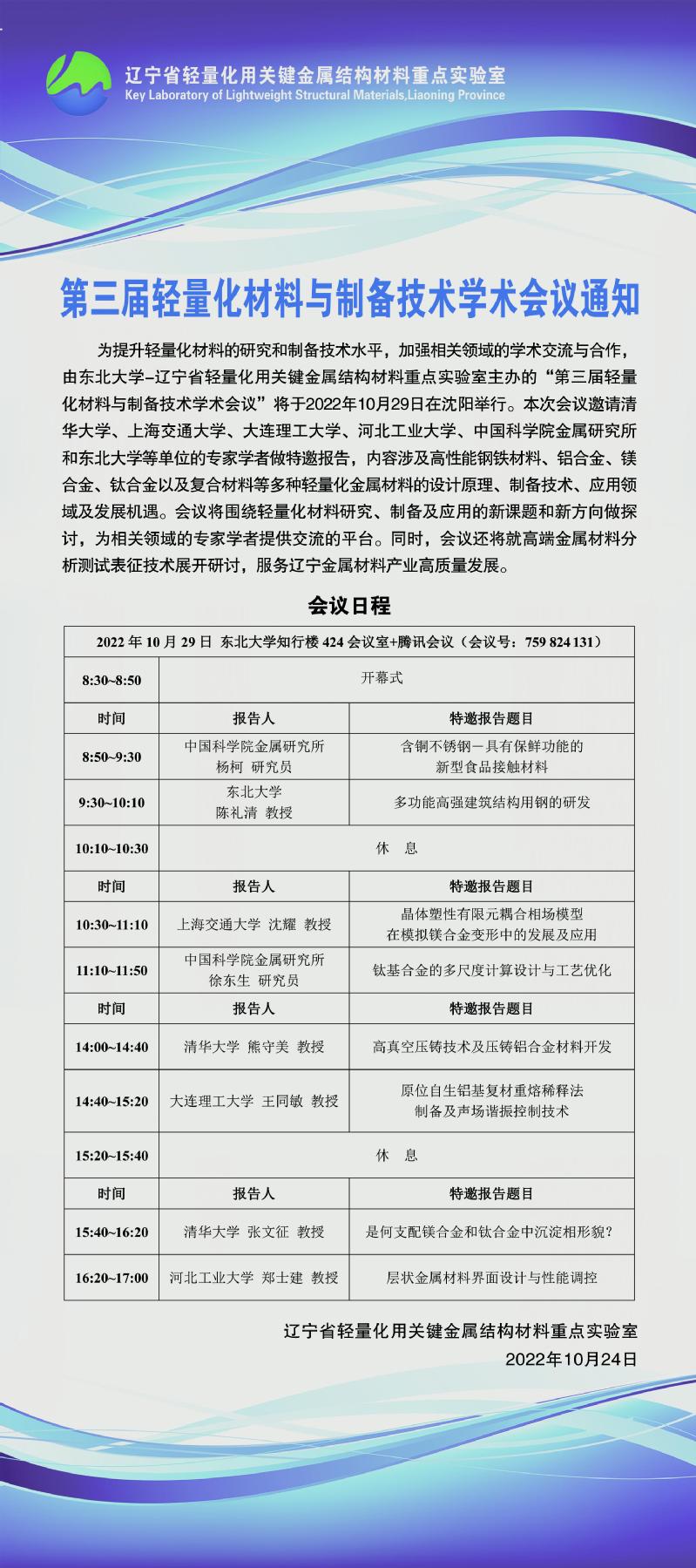 第三届轻量化材料与制备技术学术会议