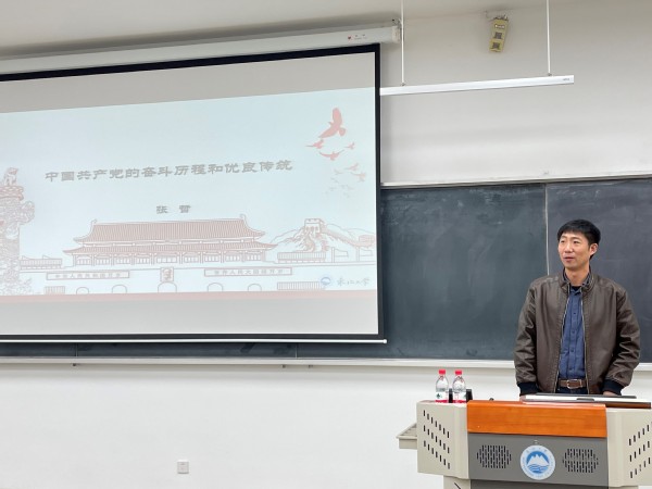 本次培训由商淼主持。培训开始,张哲以中国共产党人的精神谱系为中心,带领同学们一起学习中国共产党人艰苦奋斗、实事求是的精神。随后,他围绕“培养什么人、怎样培养人、为谁培养人”这一根本性问题,并结合历史实际,为同学们详细介绍了中国共产党的奋斗历程和优良传统。最后,张哲从新民主主义革命时期、社会主义革命和建设时期、改革开放和社会主义现代化建设新时期和中国特色社会主义新时代四个时期为同学们详细介绍了中国共产党百年奋斗的光辉历程和历史经验。他表示,希望同学们能认真学习中国共产党的发展历程,传承党的优良传统,在学思践悟中坚定理想信念,在奋发有为中践行初心使命,让青春在全面建设社会主义现代化国家的火热实践中绽放绚丽之花。