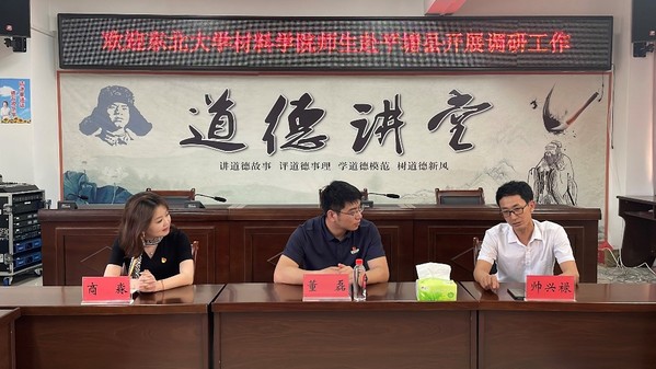 最后,实践团来到平塘县融媒体中心,与平塘县接待负责人帅兴禄围绕平塘县乡村振兴、传承科学家精神进行了深入交流。帅兴禄表示,会通过理论与实践相结合的方式,把传承科学家精神融入研究实践,以点带面,推进社会经济发展提质增速,助力乡村振兴。商淼表示希望同学们以南仁东先生为榜样,以天眼精神为努力的基石,坚定“学术强国、科研报国”理想信念,为全面建设社会主义现代化国家贡献青春力量。董磊谈到,新时代青年学生,应当坚持“四个面向”,发扬科学家精神,勇闯自主创新“无人区”,敢啃关键核心技术的“硬骨头”,以深厚的家国情怀和强烈的社会责任感,为党、为祖国、为人民鞠躬尽瘁、不懈奋斗。
