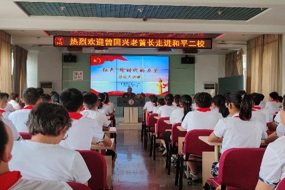 本次活动由和平大街第二小学德育副校长吴卫主持。活动伊始,吴卫介绍了曾国兴的光荣事迹,并对曾国兴和全体学生党员的到来表示热烈欢迎。随后,曾国兴向大家讲述了抗美援朝战争的起因以及中国人民志愿军在朝鲜战场上与朝鲜人民并肩作战的英雄事迹,并用自己战争时的亲身经历给现场的同学们诠释了一名共产党员的初心和使命。他表示,希望用自己的亲身经历,向年轻一代和小朋友们讲好这段红色故事。全体师生听后感触颇深,深深感受到先辈们不畏艰难的无私奉献精神。并在孩子们的心中播种下一颗颗爱国的种子、红色的种子,更是让学生们知史爱党、知史爱国,深入了解党的优良传统和作风。最后,在场师生齐唱《没有共产党就没有新中国》,共同表达永远听党话、跟党走的坚定信心。