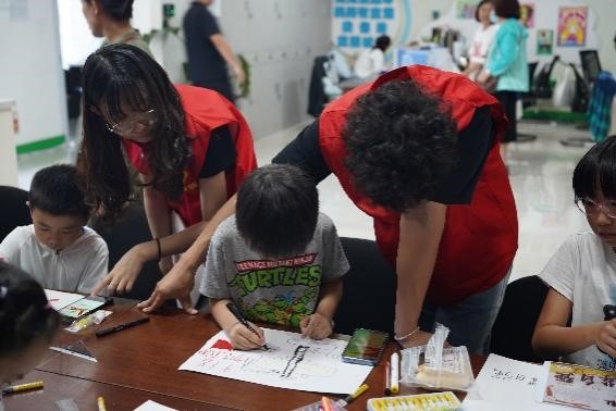 活动伊始,志愿者们向小朋友们介绍了“九一八”事变的历史背景以及重要意义,讲述了中国共产党领导广大人民在抗日战争中取得的伟大成就,引导小朋友们铭记历史、发奋图强、报效国家。随后,志愿者带领小朋友们制作手抄报,书写对祖国和对先辈的热爱与赞美。通过绘制手抄报,小朋友们表达了对前辈先烈的敬仰,同时也增强小朋友们“吾辈当强,振兴中华”的信念和决心。通过志愿者们的引导,增强了小朋友们心中的爱国情怀。最后,志愿者们纷纷表示,作为当代青年,应以史为鉴、不忘国耻,传承红色基因,延续红色血脉,永葆爱国情怀。