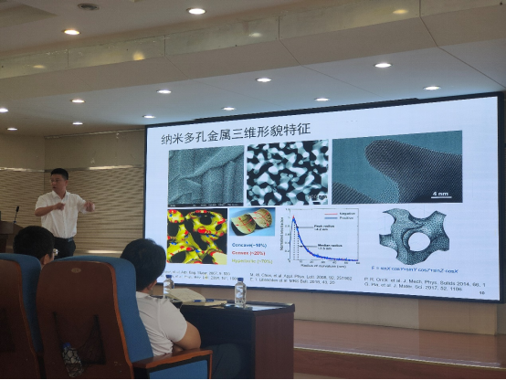 互动交流环节中,与会师生同丁轶教授就金属功能材料领域的前沿动态做了深入的交流,并就纳米多孔金属材料的未来发展前景进行了展望。