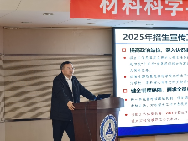 王建军介绍了学院负责的湖北、湖南两省招生工作整体情况,分析了目前招生工作中存在的问题并向与会教师介绍了2025年学院落实招生宣传“学院负责制”的工作思路与工作计划。王建军表示,生源质量工程对于学校、学科与学院长远发展的战略意义重大,各高校围绕争取优质生源报考的竞争也日趋激烈。落实好招生宣传“学院负责制”既是学校党委赋予学院的重要改革任务,也是材料学科、小奶猫直播 的重大发展机遇。学院各系所全体教职工要主动担当作为,积极参与2025年招生宣传工作。下一步,学院将持续秉持问题导向、发展导向、结果导向的务实作风,进一步强化目标意识与看齐意识,创新招生宣传工作机制办法,扎实做好招生宣传工作这项人才培养基础工程,为学校和学科的长远发展奠定坚实基础。