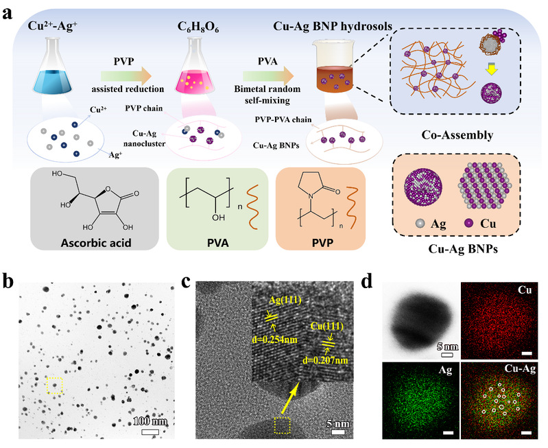 图1 Cu-Ag BNP水溶胶的制备和微观形貌