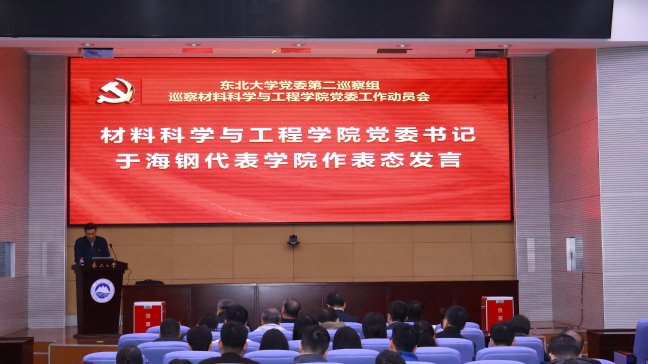 党委书记于海钢代表学院作表态发言。他表示,学院领导班子和全体师生将切实提高政治站位,严肃工作纪律,全力做好配合,牢牢把握巡察这一重要契机,深剖问题症结、找准短板弱项,系统谋划以高质量党建保障和促进事业高质量发展的关键路径,为冲击世界一流学科提供坚强的政治、思想和组织保证,在学校一流大学建设中展现材料担当、贡献材料力量。