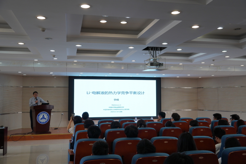 李峰以《Li离子电池的电解液热力学竞争平衡设计》为题,结合新能源行业做专题报告。他以团队在新能源材料领域的突破性成果为例,深入解析了电解液设计中的热力学竞争平衡机制及创新策略,为同学们揭示了电池技术研发的科学本质与前沿方向。